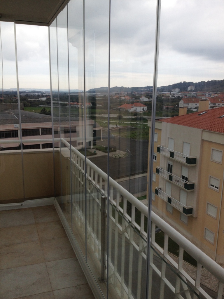 Projeto executado com cortina de vidro a 90º, perfis lacado branco, vidro temperado SGG 10mm, caixilho em alumínio série SB, guarda com vidro laminado/temperado 44.2 prumo e ferragens em Inox escovado 316.